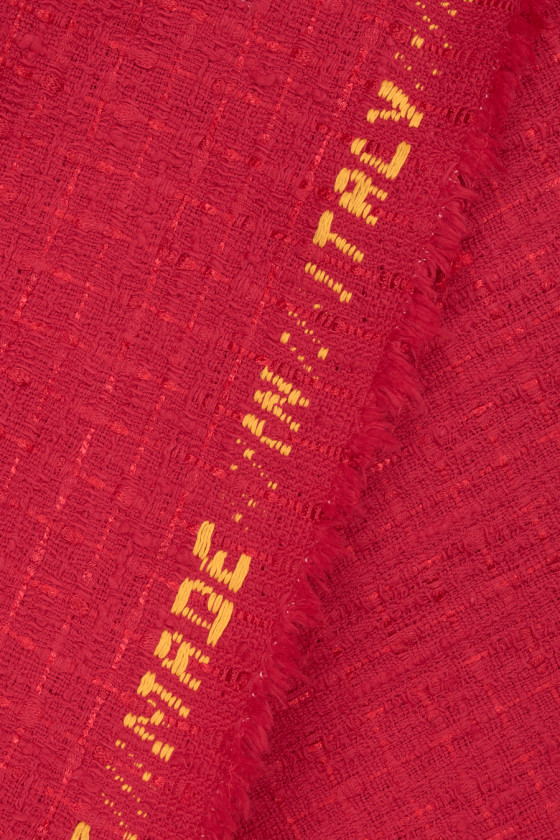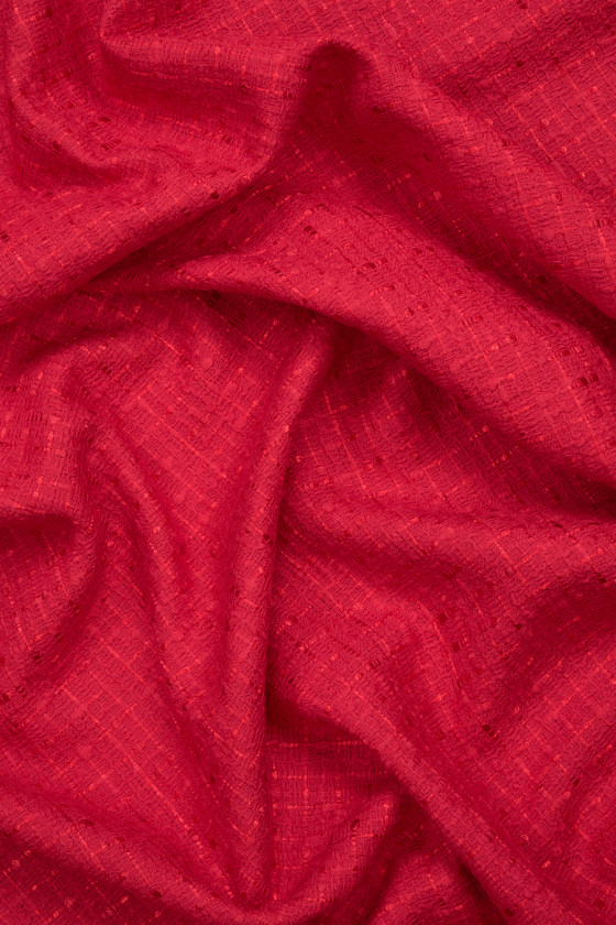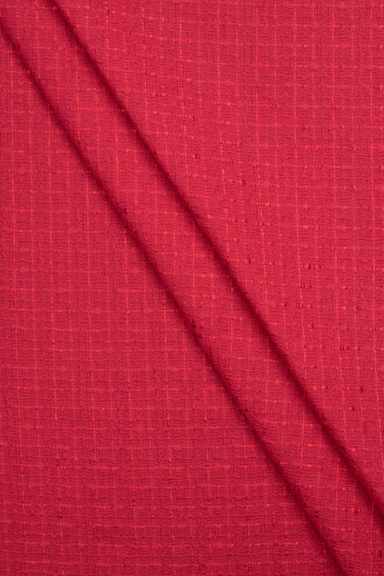 Tissu de costume Chanel italien en rouge. Le tissu Chanel est un tissu très élégant, doux et charnu, connu pour son tissage original.