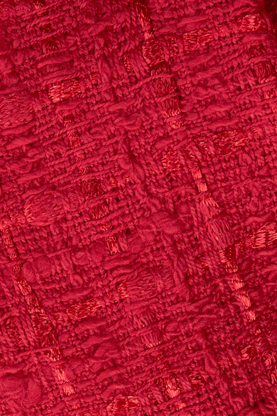 Tissu de costume Chanel italien en rouge. Le tissu Chanel est un tissu très élégant, doux et charnu, connu pour son tissage original. Parfait pour coudre un costume, une veste, une veste, une jupe ou un manteau fin.