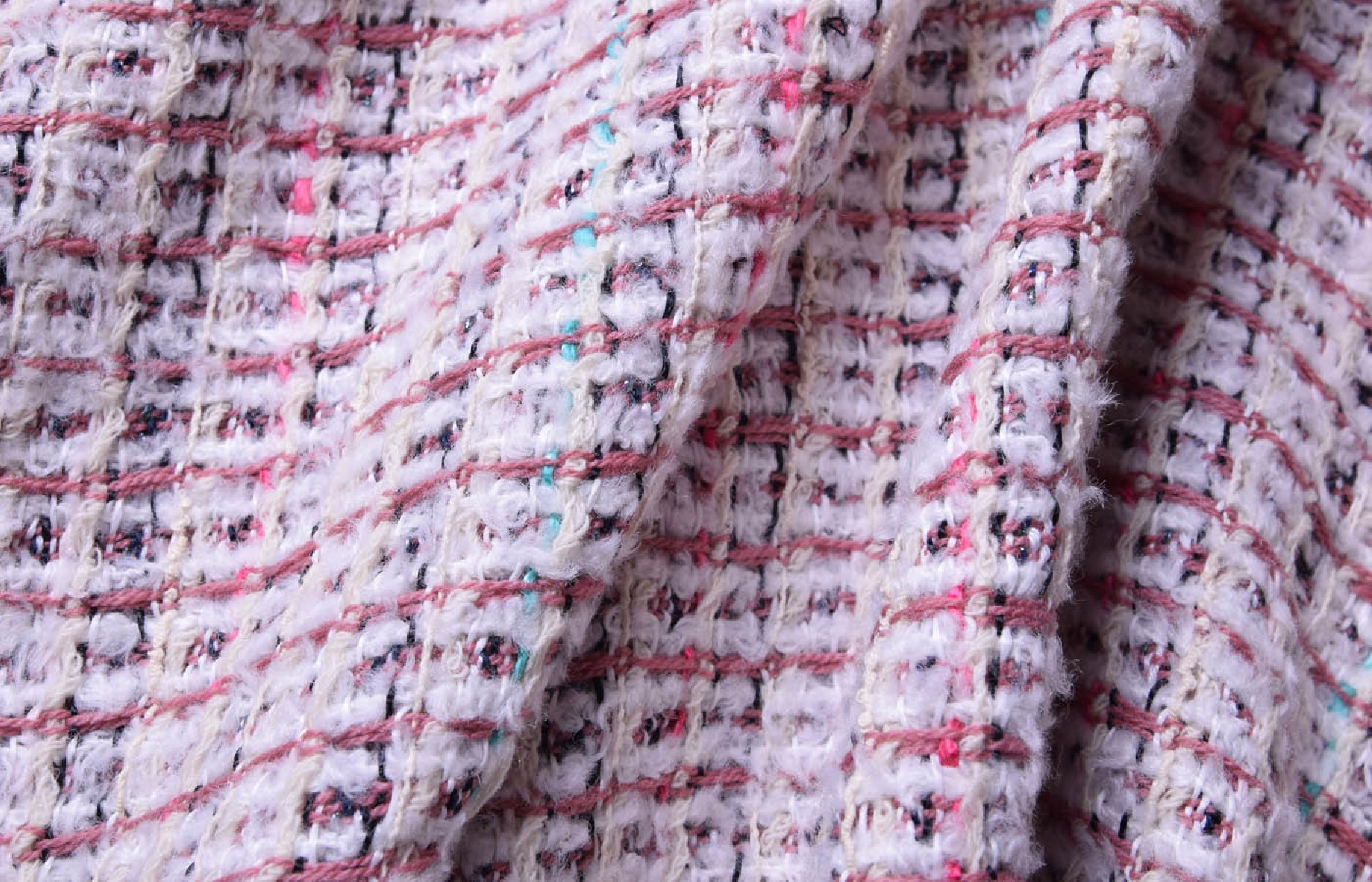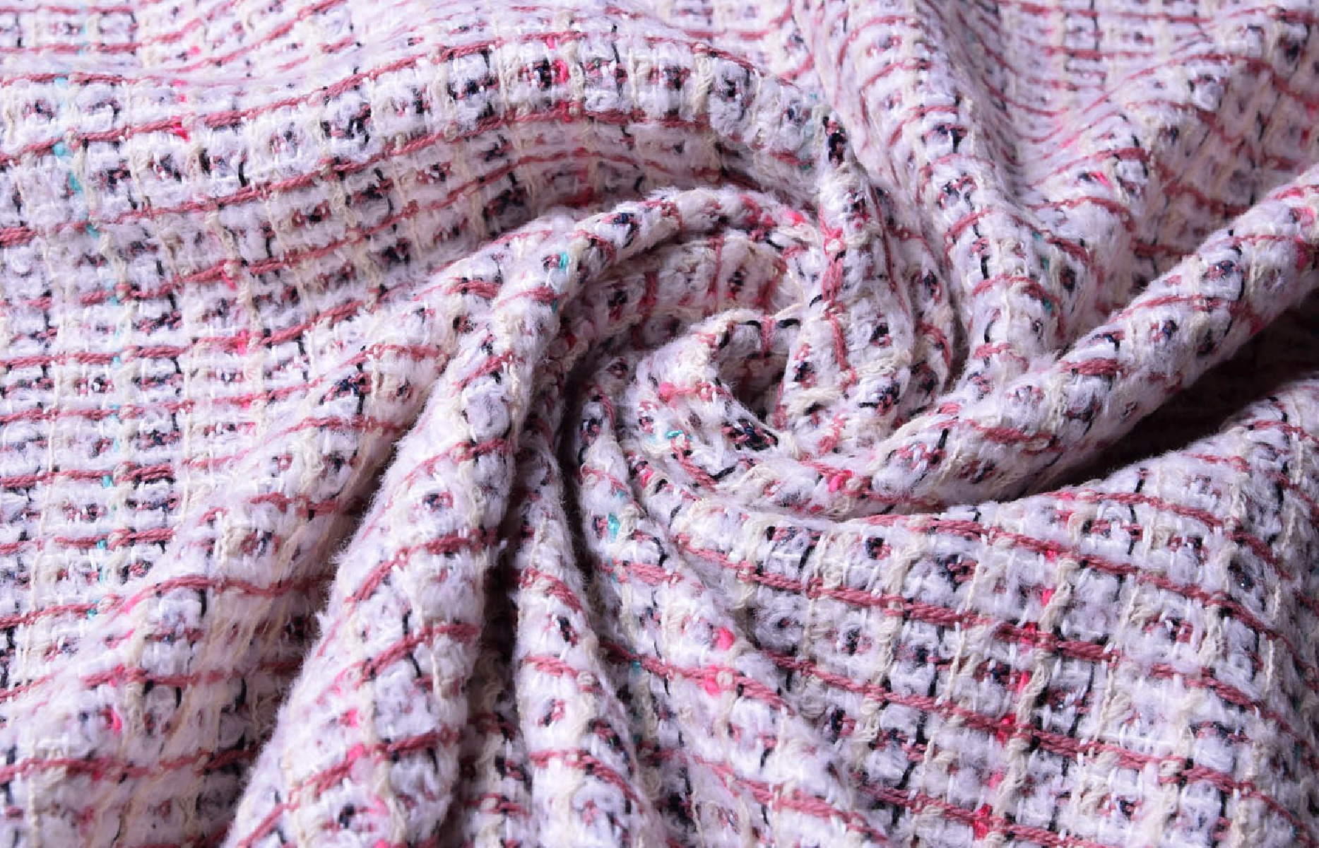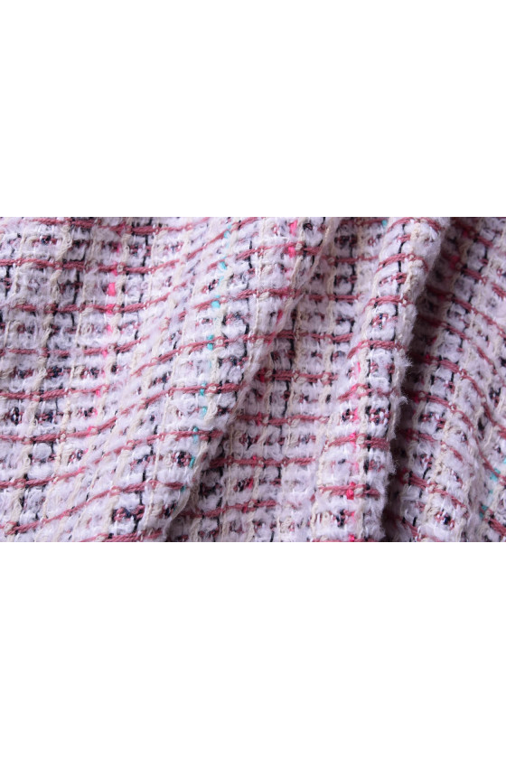 Un beau tissu de costume de chanel, à partir duquel nous pouvons coudre un ensemble de printemps composé d’une veste et d’une jupe. Idéal également pour les couches fines.