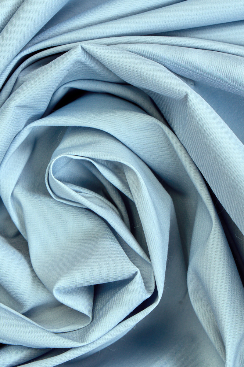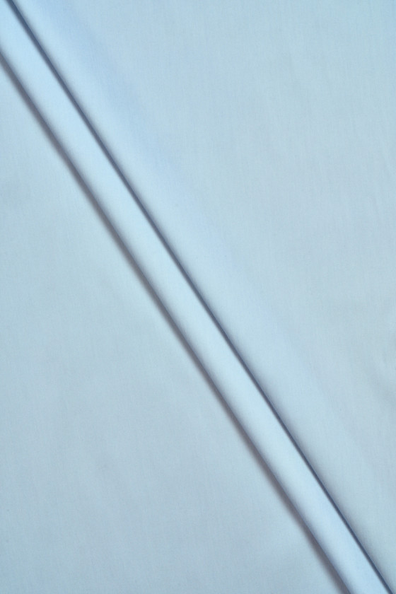 Tissu pour chemises de couleur bleue tissé à partir de coton et d’élasthanne. Tissu élastique, adapté pour coudre des vêtements légèrement ajustés.