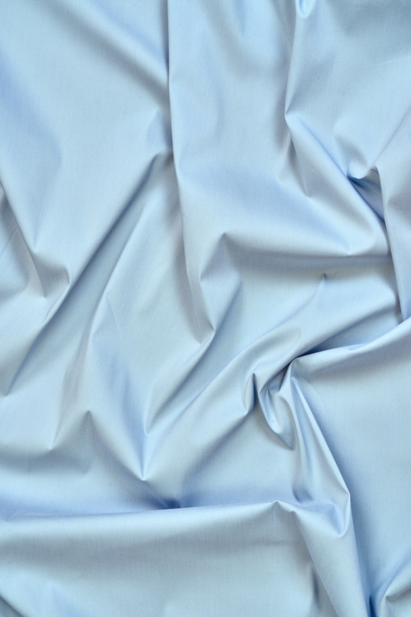 Tissu pour chemises de couleur bleue tissé à partir de coton et d’élasthanne.