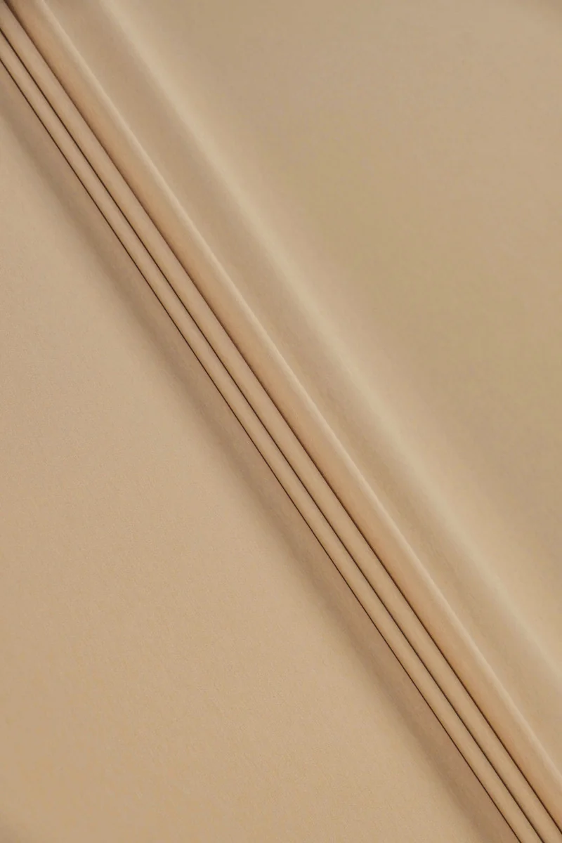 Chemise italienne en coton, non élastique de couleur beige. Un tissu fin mais opaque à l’armure lisse destiné à coudre une chemise, un chemisier ou une robe. Tissu naturel de très bonne qualité.