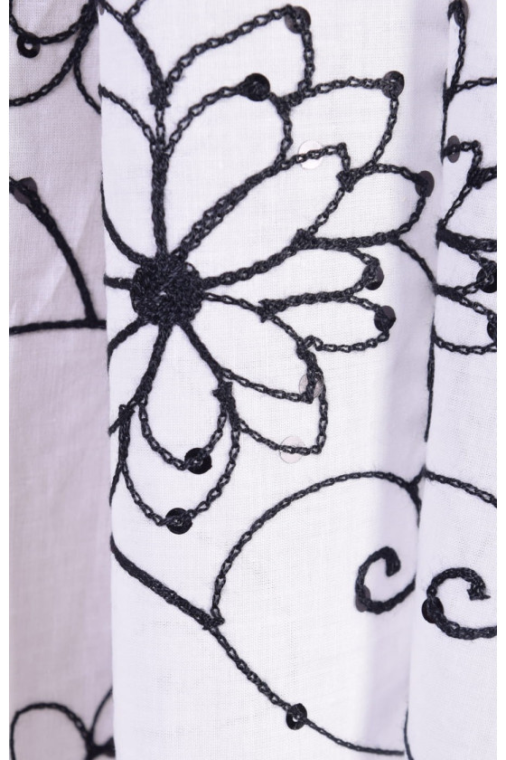 Coton fin et batiste. Tissu non élastique. Il y a des motifs brodés avec des paillettes sur du coton. Parfait pour les robes, les jupes, les chemises.