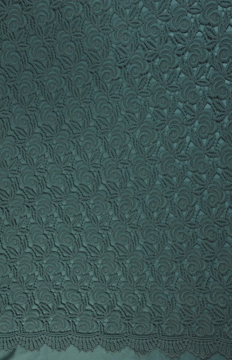 Dentelle guipure avec un motif classique en vert d’eau. Le dernier coupon avec des dimensions de 160 cm * 145 cm.