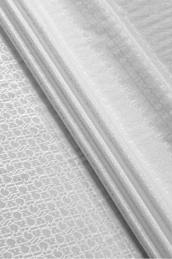 Doublure en viscose italienne en blanc. Signé du nom d’une maison de couture bien connue. Tissu non élastique, doux et légèrement brillant. Parfait pour doubler les manteaux, vestes, gilets, vestes.