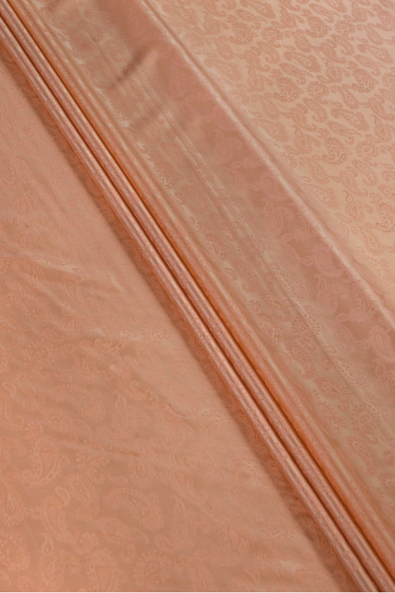 Doublure en jacquard italien avec un motif oriental - bicolore beige-abricot. Le tissu est non élastique, légèrement brillant. Parfait pour doubler les manteaux, vestes, gilets, vestes.