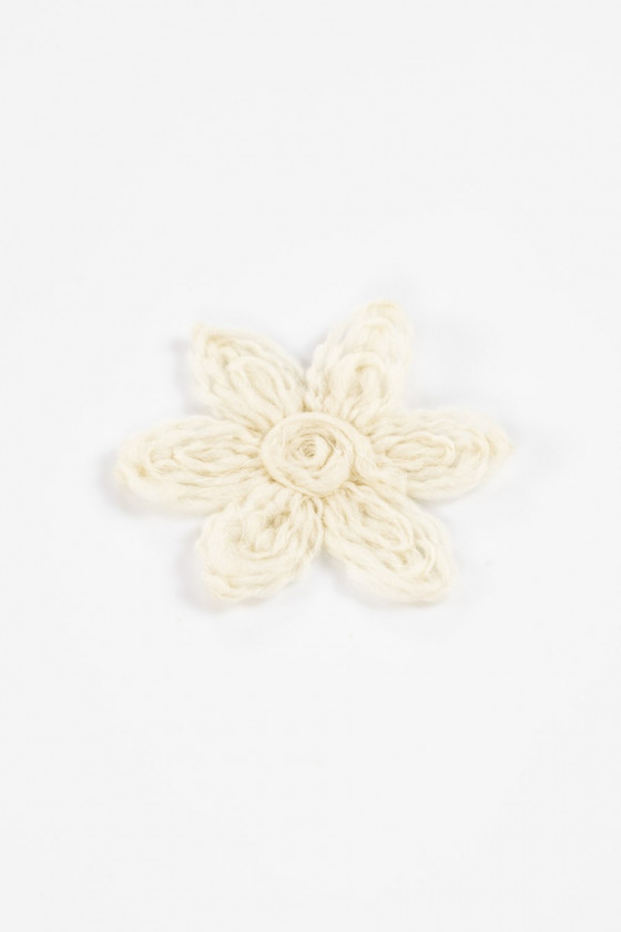 Belle application en forme de fleur d’une taille de 10 cm - en laine naturelle de couleur écrue.