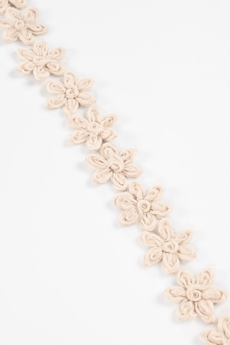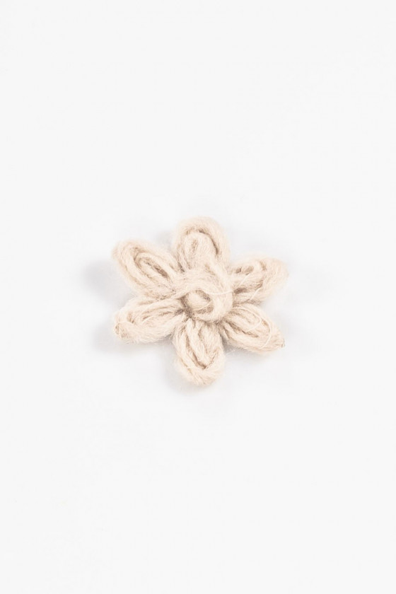 Fleur italienne appliquée en beige, en laine naturelle. Largeur : 5 cm.