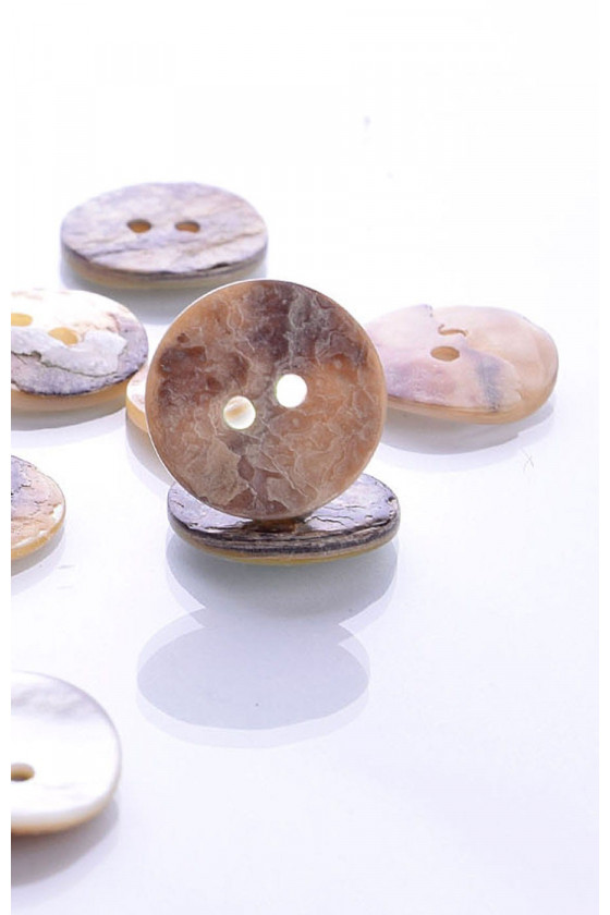 Un petit bouton en nacre artificielle. Chaque bouton a un motif unique d’environ 1,5 cm de large.