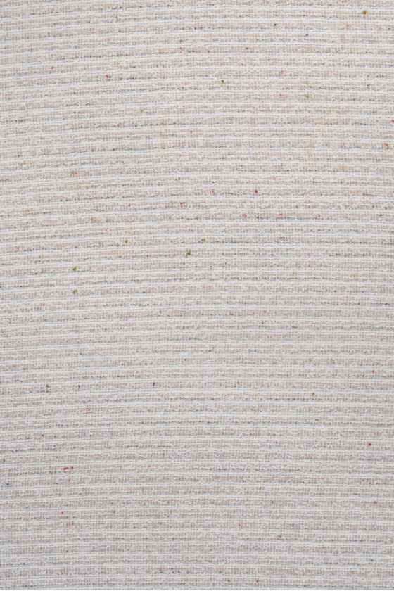 Un tissu habillé au tissage lâche comme un filet destiné aux robes de printemps aux couleurs crème, beige très clair aux accents délicats et colorés. Le tissu est tissé à partir de viscose et de polyamide et doit être doublé d’une doublure.