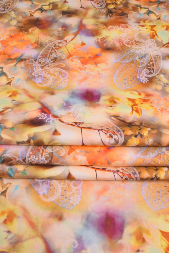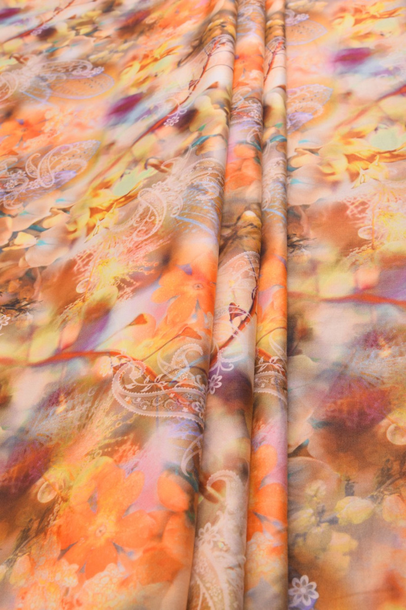 Coton italien 100% naturel dans des couleurs chaudes jaune et orange. Une proposition pour coudre des robes d’été, des jupes, des pantalons.