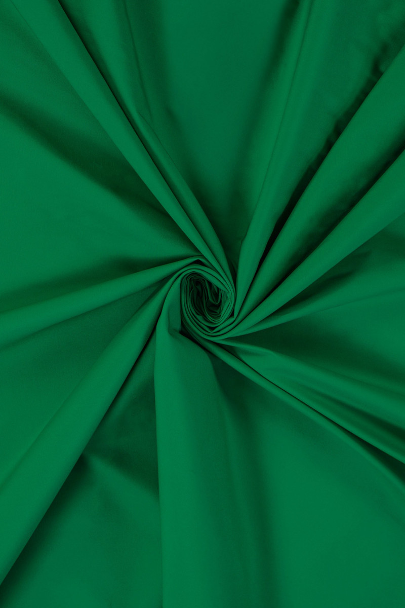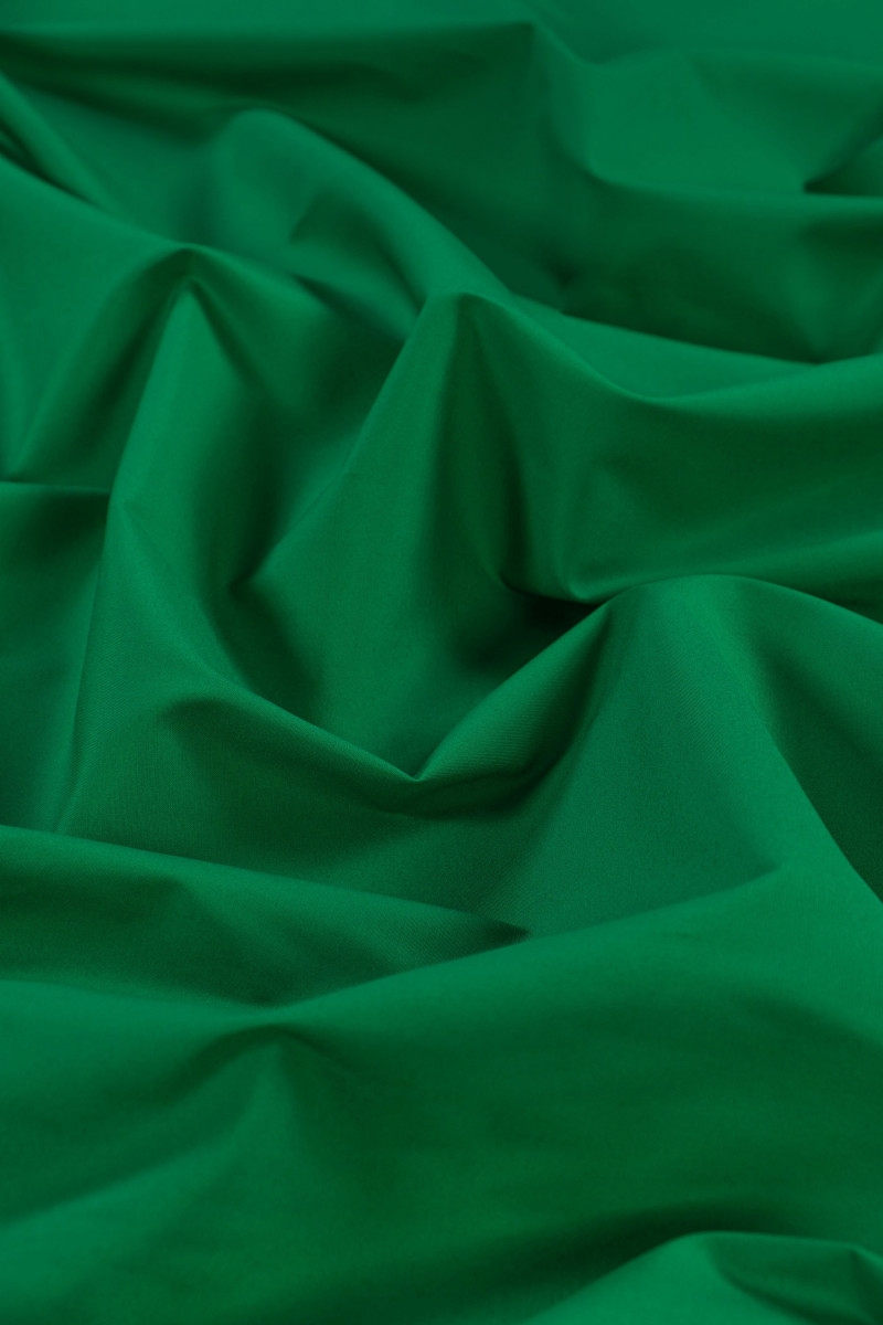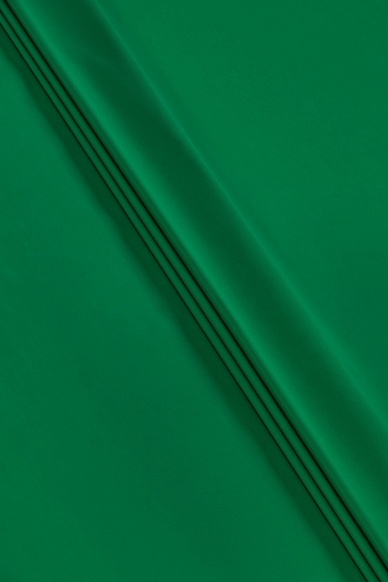Tissu en coton italien avec un mélange d’élasthanne de couleur verte. Tissu élastique, légèrement brillant, rigide.