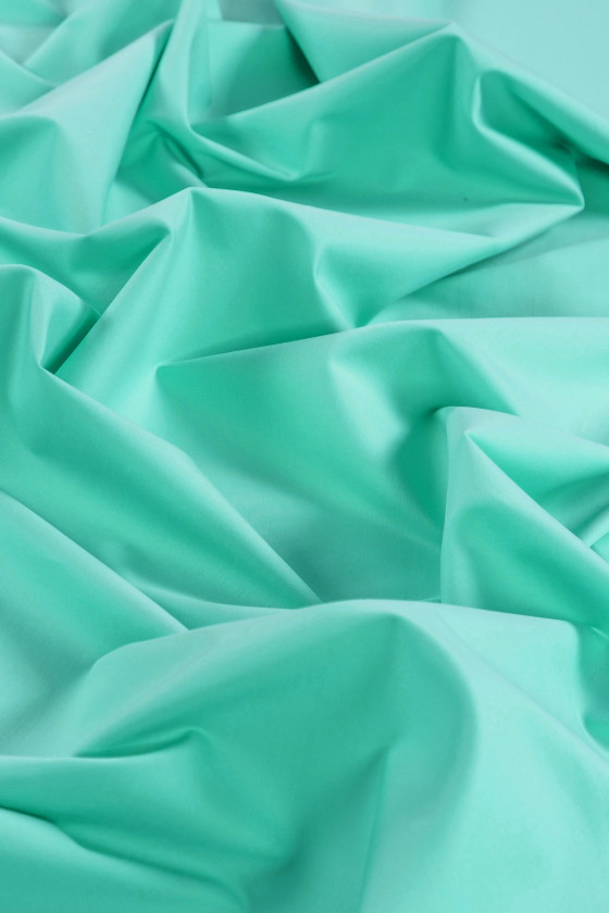 Tissu en coton italien avec ajout d’élasthanne en turquoise clair. Un tissu élastique d’épaisseur moyenne et un tissage lisse et légèrement brillant destiné à coudre une robe, une jupe ou un pantalon. Tissu naturel de très bonne qualité, l’ajout d’élasthanne le rend plus confortable à utiliser et se froisse moins. Un tissu irremplaçable au printemps et en été.