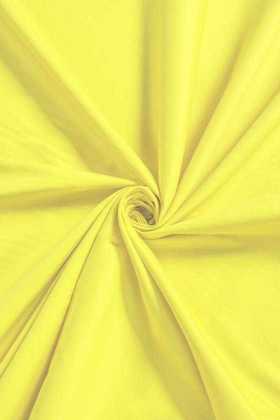 Tissu en coton italien avec ajout d’élasthanne en jaune - citron. Un tissu élastique d’épaisseur moyenne et un tissage lisse et légèrement brillant destiné à coudre une robe, une jupe ou un pantalon. Tissu naturel de très bonne qualité, l’ajout d’élasthanne le rend plus confortable à utiliser et se froisse moins. Un tissu irremplaçable au printemps et en été.