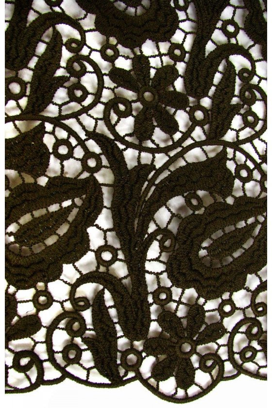Dernier coupon Dentelle guipure en bronze. Parfait pour les robes et les jupes. Coupon mesurant 130 cm* 120 cm.