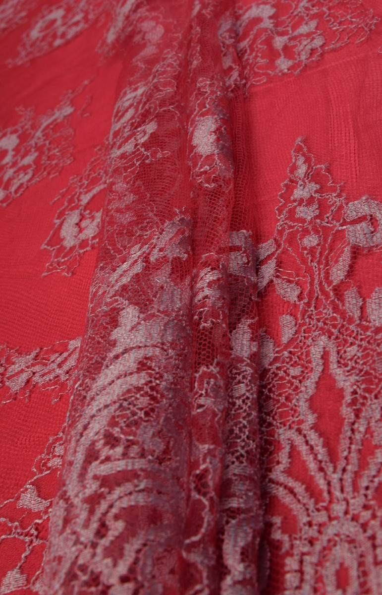 Belle couronne finie des deux côtés avec une dent rouge et gris tourterelle. Parfait pour les chemisiers et les robes. Vous trouverez ci-dessous des tissus de couleur dentelle.