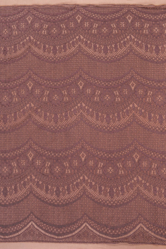 Belle dentelle Française en brun bordeaux. Un motif très intéressant de vagues et de fleurs. Le lacet est étroit (90 cm de large), le motif se fait sur la circonférence. Fini des deux côtés avec une dent - pour l’auto-excision. Parfait pour les chemisiers et les robes.
