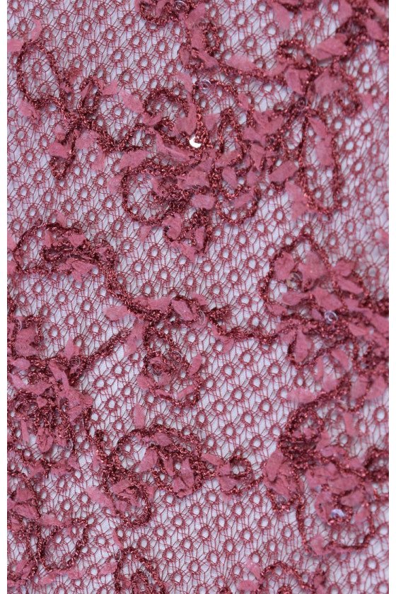 Dentelle fine et délicate pour robes et chemisiers. Beau design. Sur le mannequin, elle est épinglée sur du satin de soie naturel sur son périmètre.