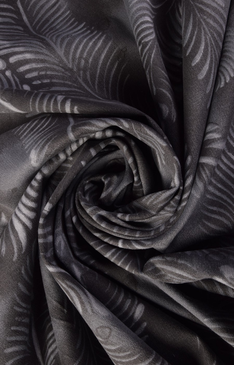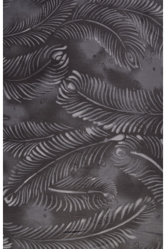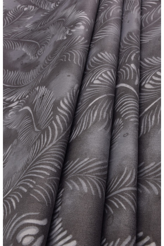 Denim élastique, tissé à partir de fils de viscose -94% et d’élasthanne 6%. Couleurs - feuilles claires sur un fond gris foncé. En raison de son élasticité, le tissu convient à la couture de vêtements moulants.