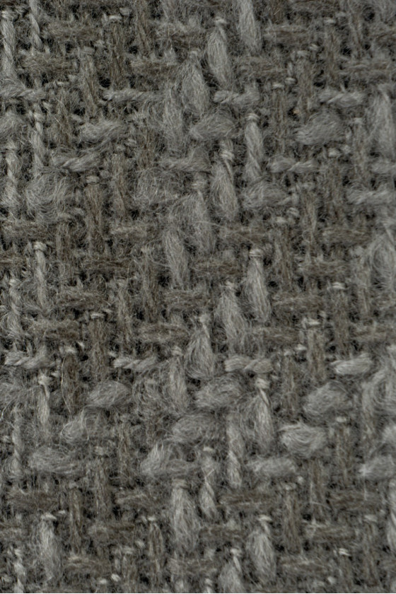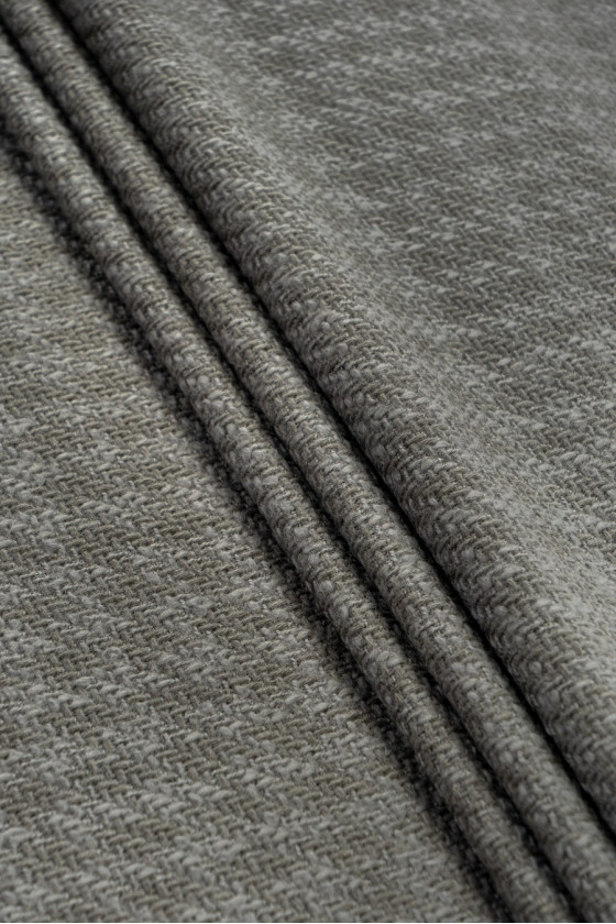 Tissu de costume italien gris avec une goutte de vert, tissé à partir de laine 100% naturelle. Un tissage très intéressant, qui rappelle les tissus chanel.