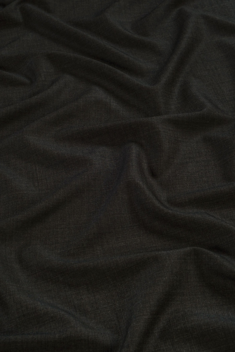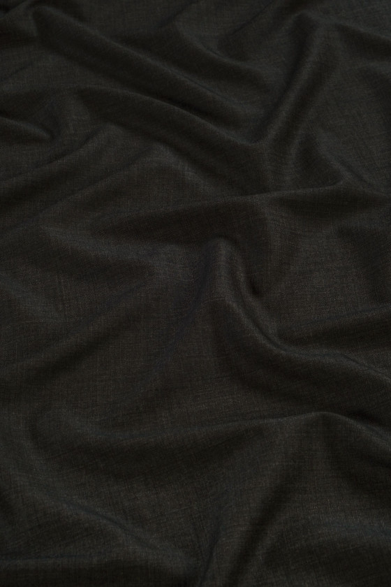 Laine de costume italien de couleur gris-olive - mélange. Le tissu est doux, charnu, non élastique, mat.