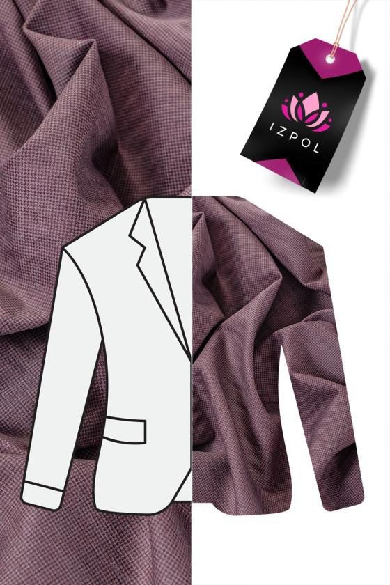 Laine de costume italien en rose-brun avec un motif à carreaux fins. Tissu fin et légèrement élastique avec un tissage classique - parfait pour coudre un costume, une robe, une jupe, un pantalon, un costume.