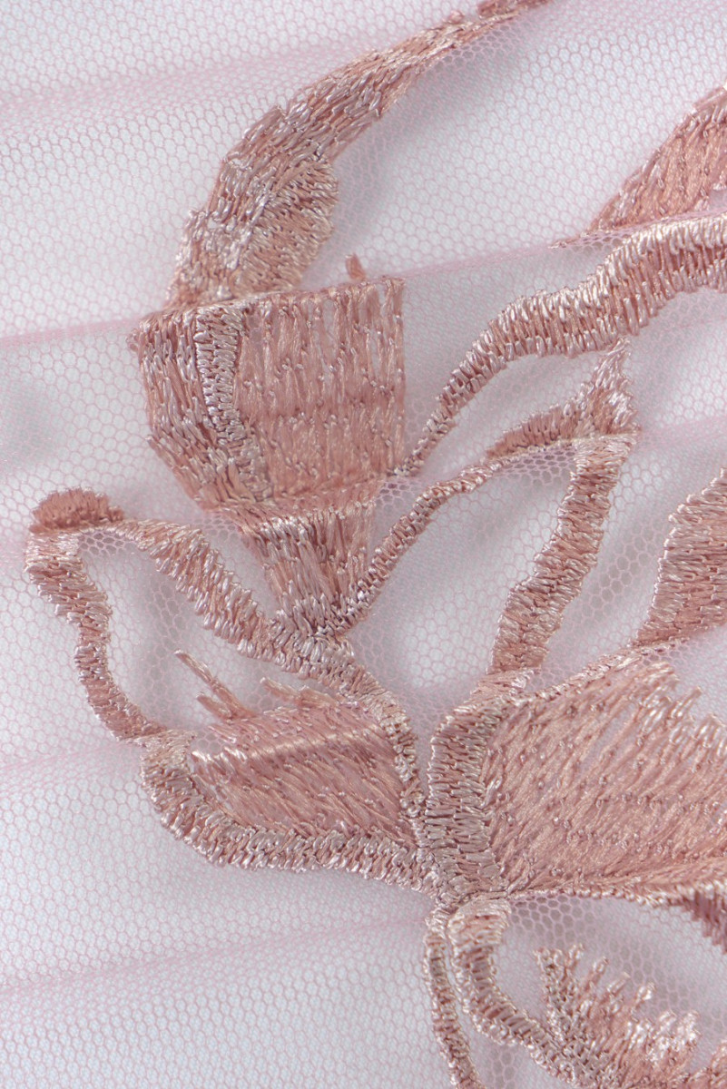 Tulle plissé italien avec fleurs brodées en rose sale. La largeur du store plissé est de 1,5 cm. Le tissu est cousu sur la circonférence.