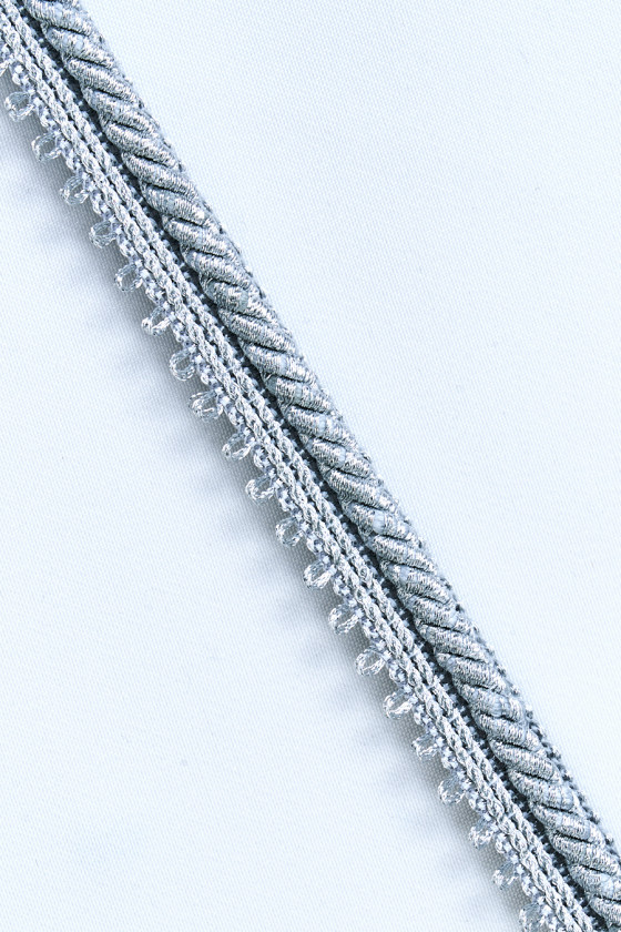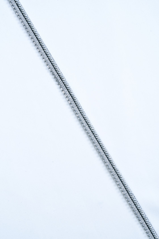 Ruban de mercerie italien d’une largeur de 1,3 cm. Le ruban est composé de deux types de cordes en argent. La finition parfaite d’une veste ou d’une robe élégante.