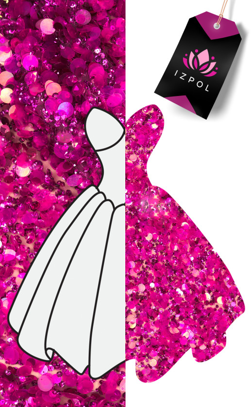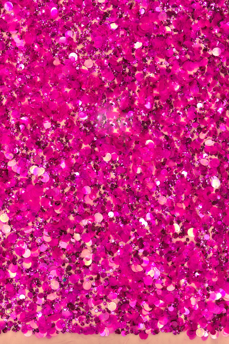Tulle rigide italien avec œillets fuchsia classiques. Il a été très richement décoré de grandes paillettes transparentes en fuchsia, elles ont un diamètre d’environ 1 cm et de plus petites paillettes de la même couleur. Le tissu est très efficace, légèrement transparent (nécessite une doublure), lourd et non élastique. Une proposition fantastique pour coudre une robe de soirée, une jupe ou un chemisier dans une édition très intéressante.