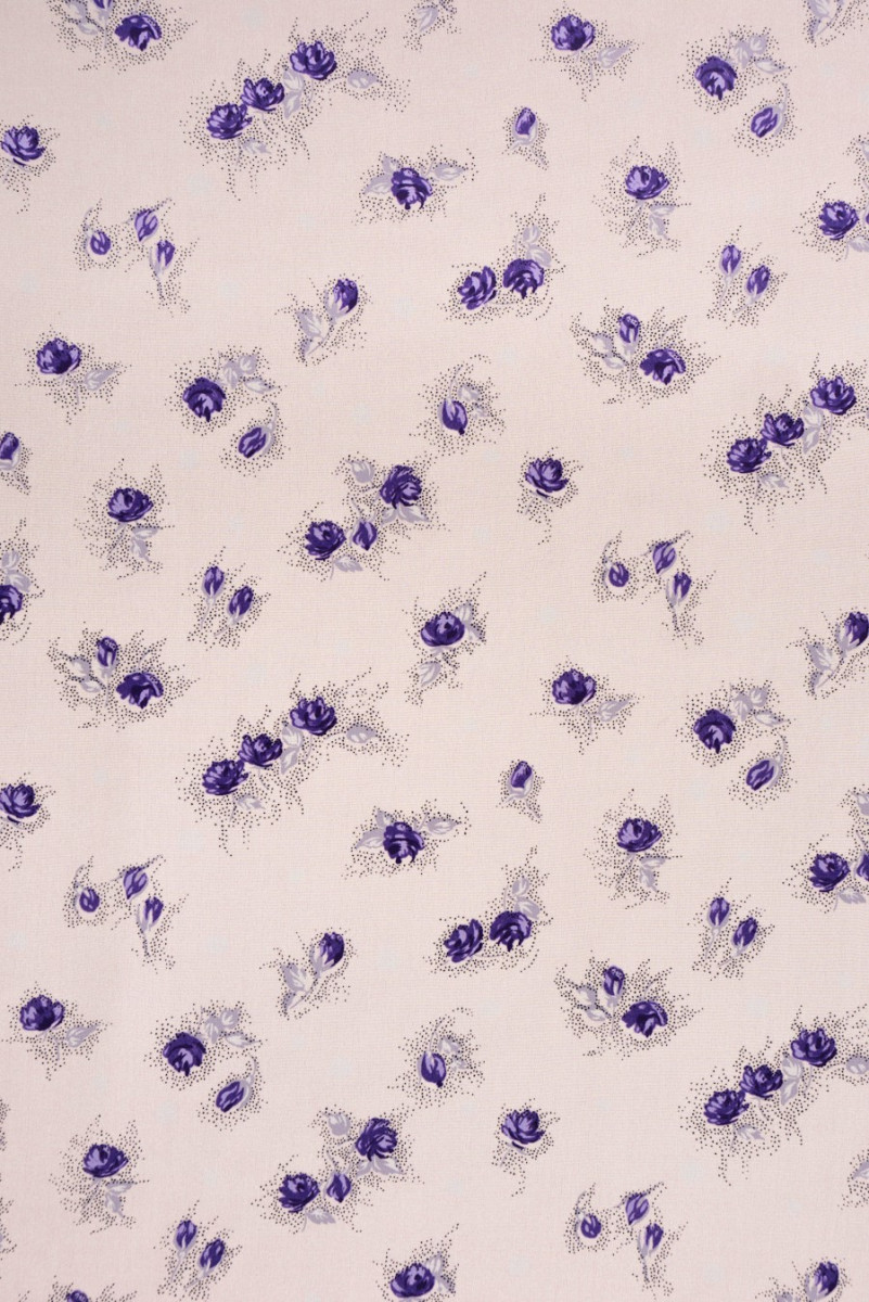 Crêpe italien 100% soie avec petites roses (environ 2cm) - signé du nom d’une maison de couture bien connue. Couleurs : fond abricot, fleurs violettes.