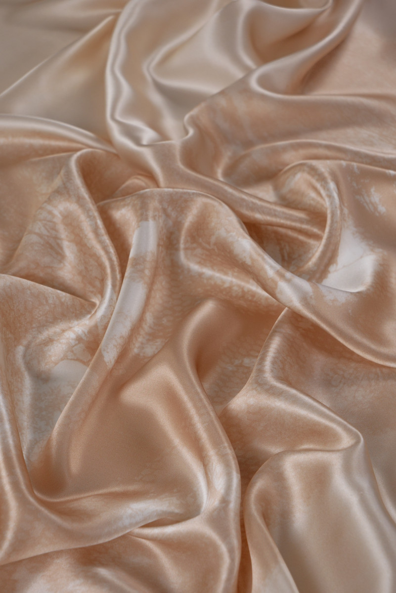 Satin italien 100% soie beige avec un motif d’arbre (55 cm) - le motif est circonférentiel. Le satin de soie est un tissu dense et léger avec une surface plane, fabriqué dans un tissage satiné. Un avantage supplémentaire est sa douceur et sa durabilité, ainsi que le fait qu’il s’adapte très bien, ne se voit pas et est agréable au toucher. D’une part, il est mat, et d’autre part, il est noblement brillant. Il peut être utilisé pour évoquer des robes aériennes, des chemisiers délicats, des jupes, des écharpes, des écharpes.