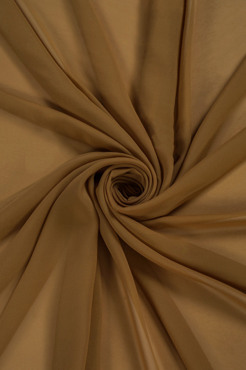 Italien, tissu fin avec un tissage georgette de couleur vieil or. La georgette est un tissu à armure toile lâche faite de fils torsadés, ce qui lui donne une surface rugueuse caractéristique. C’est une matière aérée et délicate, transparente, elle s’adapte de manière belle et fluide. Parfait pour coudre un chemisier, une robe, une jupe ou un châle.