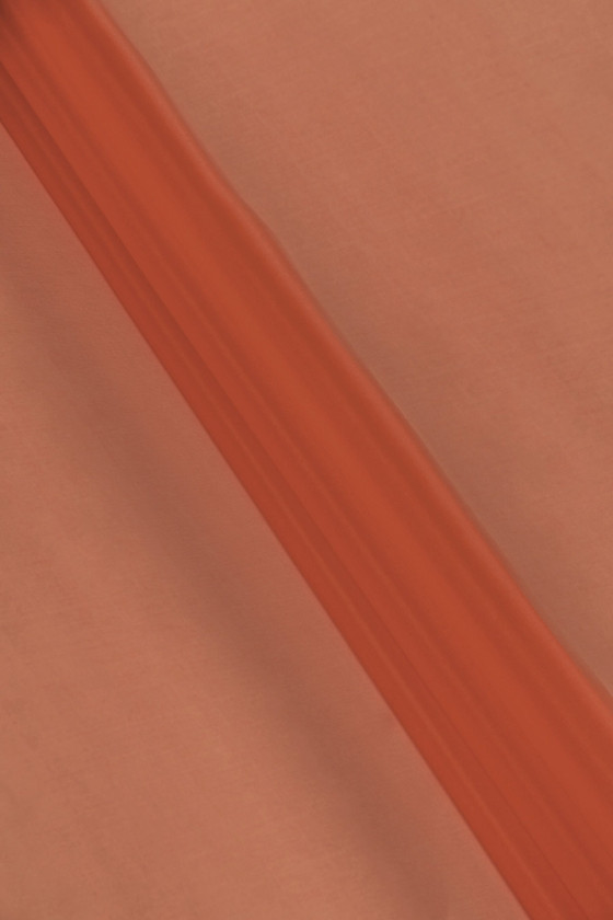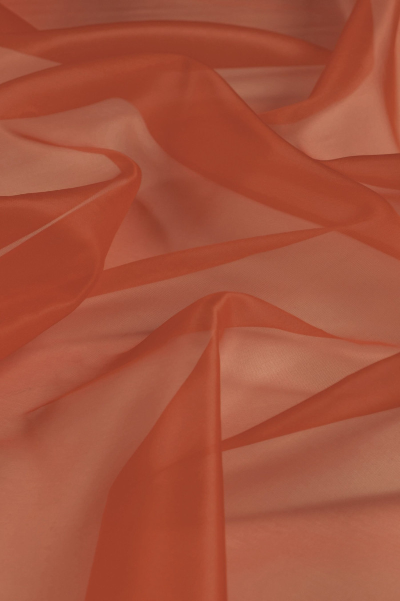 Tissu italien 100% organza de soie de couleur brique orange. L’organza de soie naturel est un tissu fin, transparent mais rigide avec une brillance délicate caractéristique des tissus en soie. Parfait pour coudre une robe, un chemisier, une chemise, une jupe.