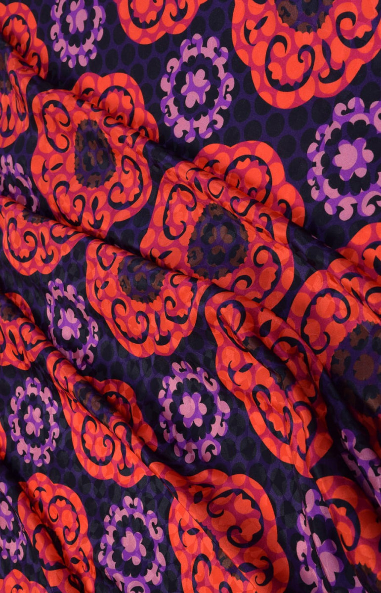 Belle soie jacquard. Mince, inflexible, délicat. Tissu opaque. Parfait pour les robes et les chemisiers.