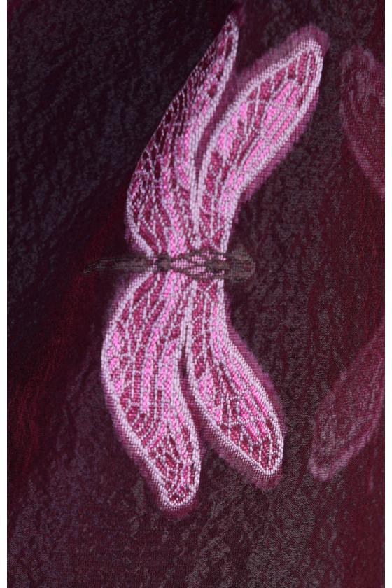 Bel organza épais en soie naturelle, légèrement transparent. Il a des libellules colorées cousues en jacquard. L’ensemble s’intègre parfaitement. Le tissu est légèrement rigide, léger. Parfait pour les robes, les jupes.