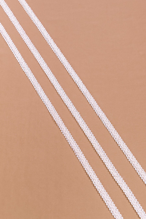 Ruban de mercerie italien de couleur perle. Le motif d’une « tresse » en ficelle. Idéal pour la finition des tissus de mariage et de coton.