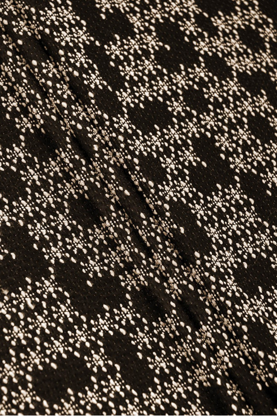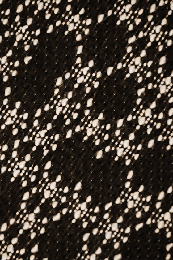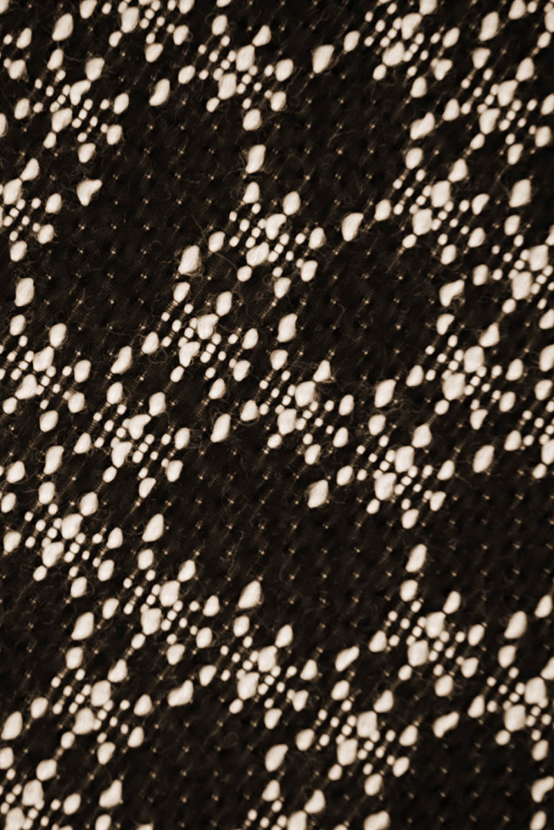 Tissu de costume italien - double face, tissé à partir de laine naturelle avec un mélange de viscose. Motif écru original sur fond marron. Tissu doux - parfait pour coudre un cardigan, un poncho, un gilet, un costume.