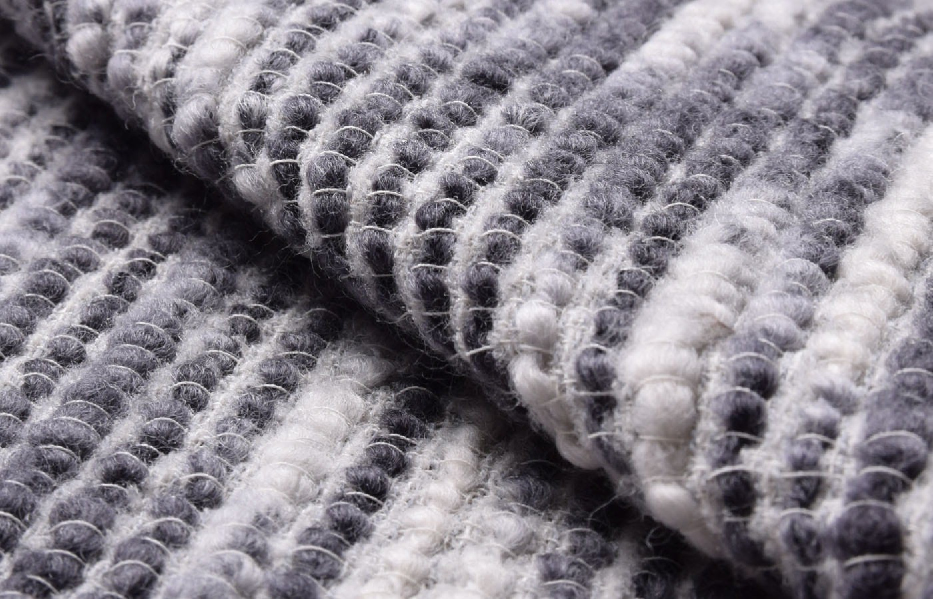 Tissu de manteau italien tissé à partir de laine naturelle avec l’ajout de cachemire de couleur gris-crème avec un motif de rayures à texture convexe. Les tissus en laine sont idéaux pour les vêtements d’extérieur (manteau, veste, gilet) car ils réchauffent et permettent en même temps à la peau de respirer. L’ajout de cachemire le rend encore plus isolant, car le cachemire est plus chaud que la laine de mouton.