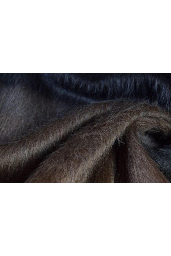 Tissu du manteau tissé à partir d’un mélange de laine naturelle - Alpaga et laine de mouton dès la première tonte. Doux au toucher, non élastique. Les cheveux mesurent environ 2-3 cm de long. Il est livré en coupons ombrés avec des dimensions de 55cm * 150cm.