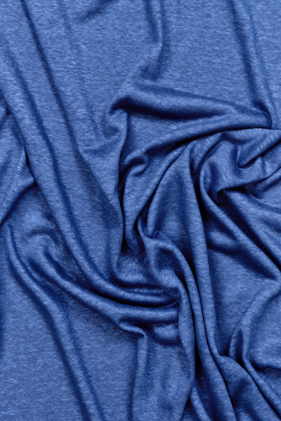 Tissu tricoté en lin et viscose bleu bleuet italien. Le tissu tricoté est fin, doux, agréable au toucher, légèrement transparent et élastique. Matériel destiné aux chemisiers, T-shirts, t-shirts.