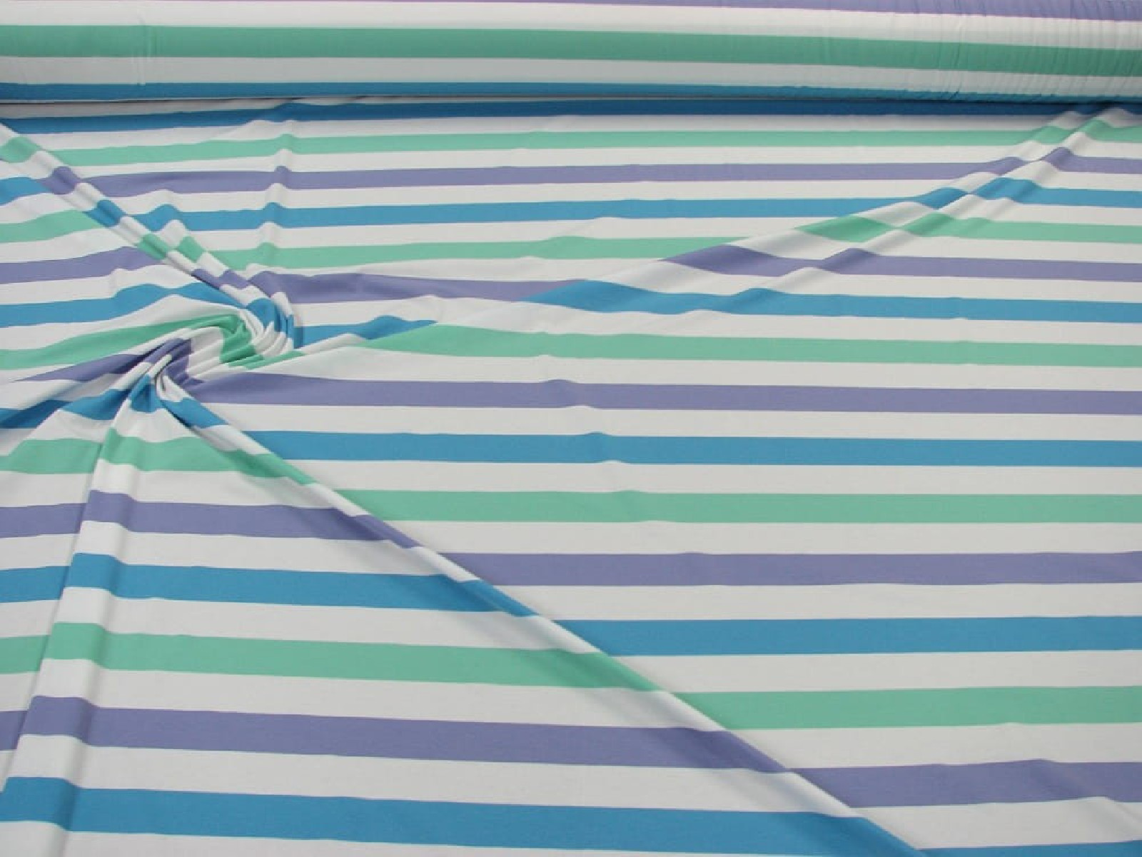 Tissu tricoté élastique en viscose à rayures pour chemisiers et t-shirts.