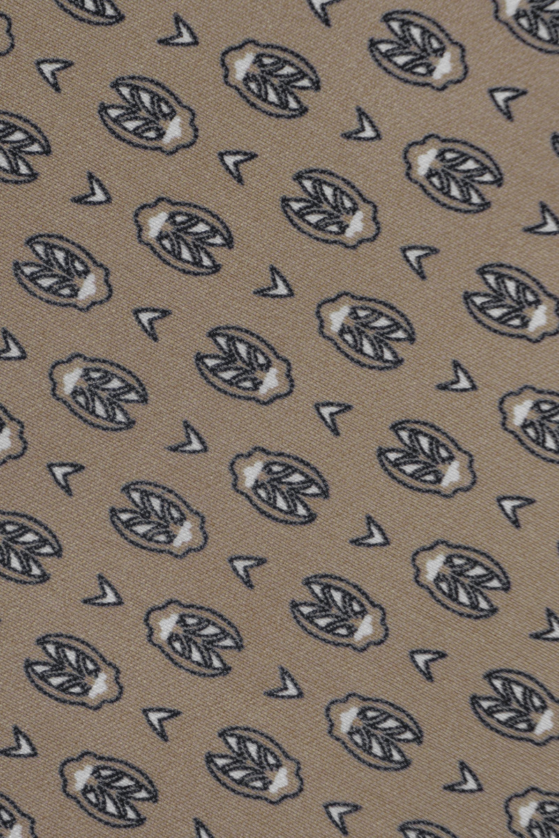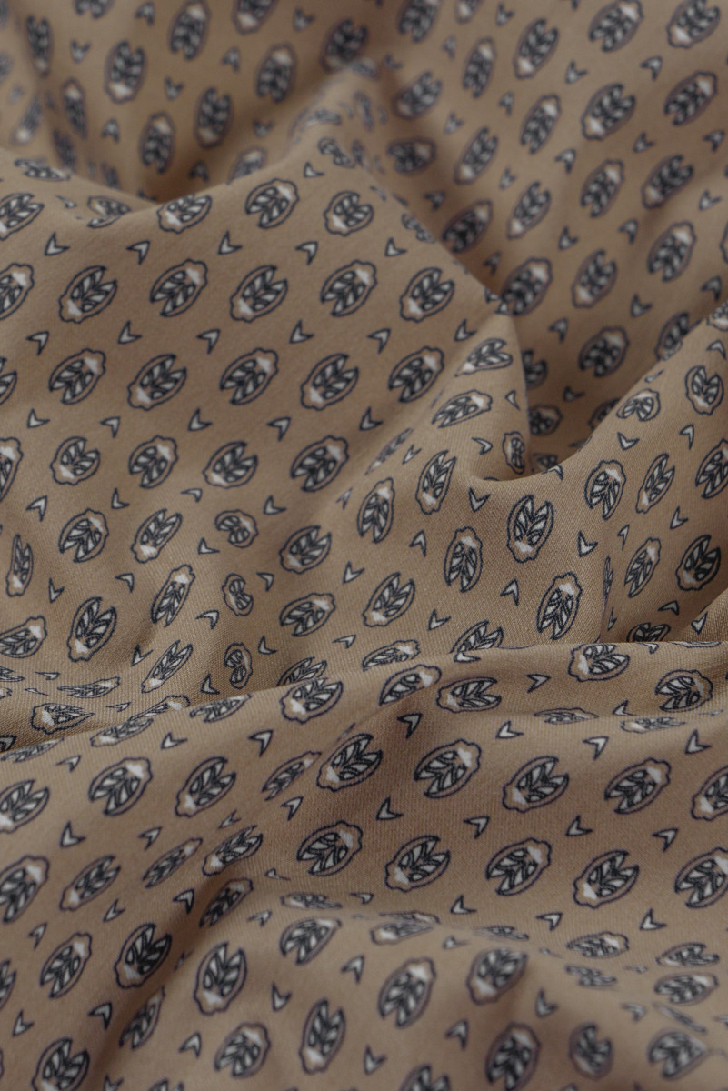 Tissu italien gris-beige avec de petits motifs - tissu mat, légèrement rigide, très élastique. Parfait pour coudre un pantalon étroit, une jupe, une veste, une robe ajustée.