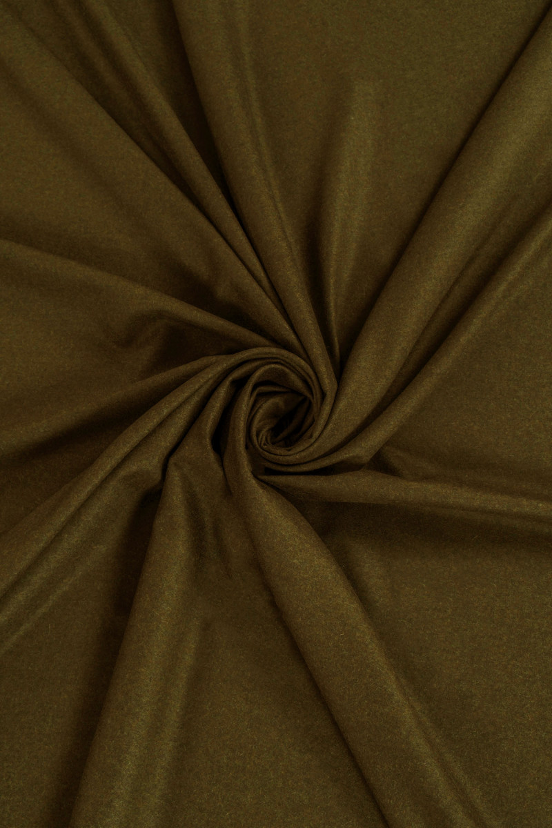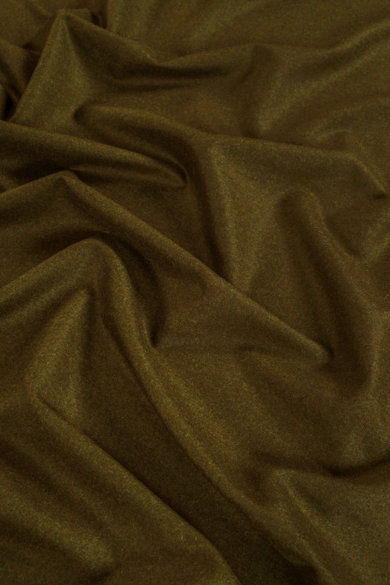 Laine de costume italien en vert olive - mélange. Tissu doux, charnu et inélastique du genre automne-hiver.