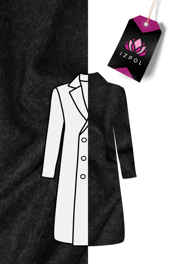 Tissu de manteau italien tissé à partir de laine naturelle avec l’ajout de polyamide de couleur graphite avec des poils plus clairs. Les tissus en laine sont idéaux pour les vêtements d’extérieur (manteau, veste, gilet) car ils réchauffent et permettent en même temps à la peau de respirer.
