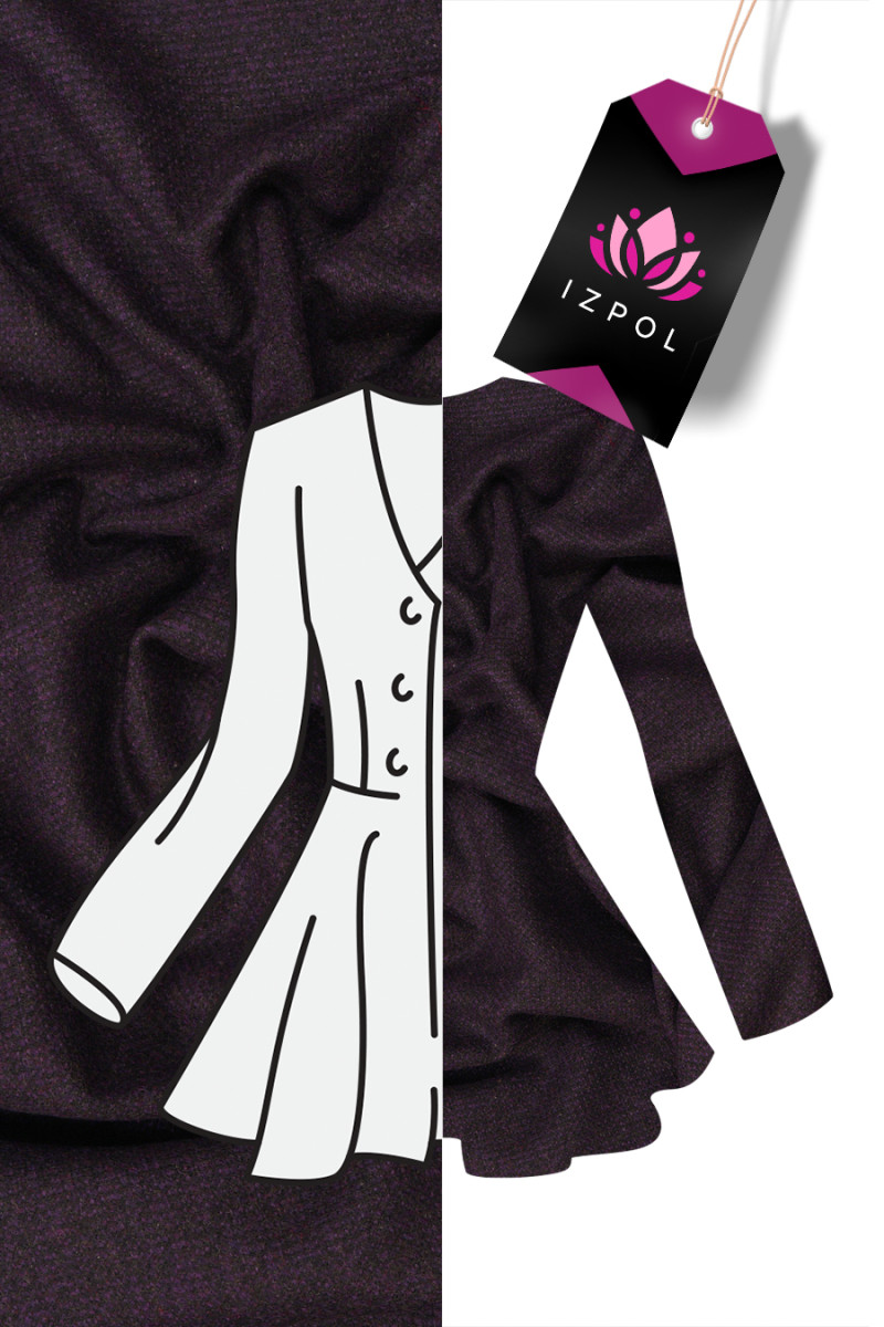 Tissu de laine italien noir et violet à armure toile à poils fins. Un tissu du genre automne-hiver.