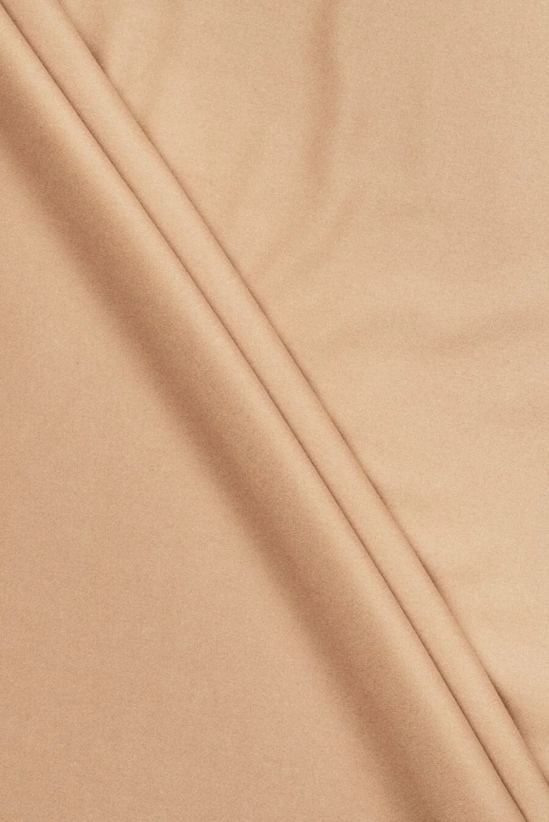 Tissu de costume italien en cachemire avec un mélange de laine naturelle et de polyamide beige. Le matériau est d’épaisseur moyenne, d’une espèce ressemblant à la flanelle. Les tissus en laine sont idéaux pour les vêtements d’automne et d’hiver, car ils réchauffent tout en permettant à la peau de respirer. L’ajout de cachemire le rend encore plus isolant, car le cachemire est plus chaud que la laine de mouton. Le tissu est idéal pour coudre un costume, une veste, un pantalon, une robe ou une jupe. Le pressing est recommandé.