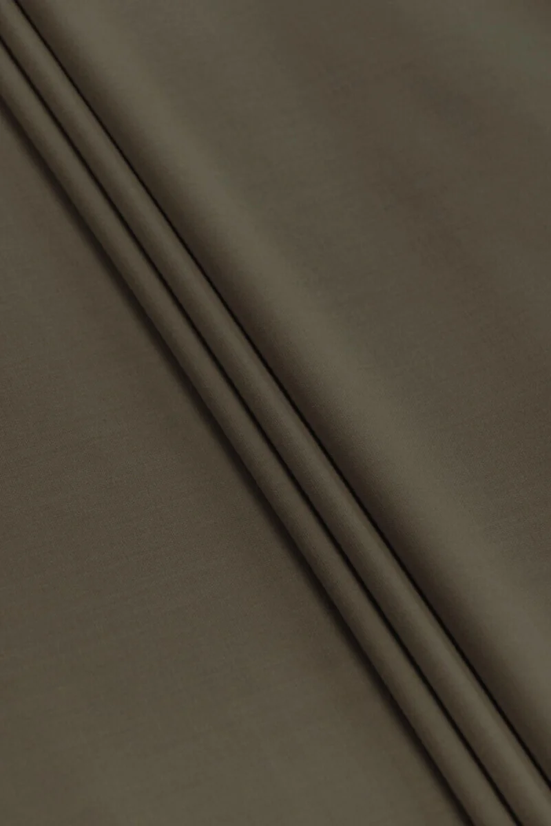Tissu de costume italien fait à 100 % laine, plus naturellement marron avec couleur olive. Le tissu est non élastique, d’épaisseur moyenne avec un tissage lisse. Il est parfait pour coudre un costume, une robe, une jupe ou un pantalon classique. Tissu naturel dans une couleur originale pour les personnes qui aiment les couleurs foncées.
