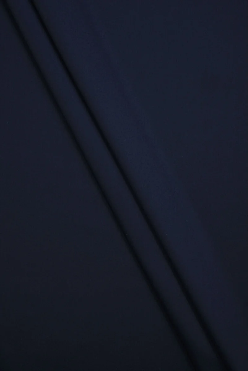 Tissu de costume italien tissé à partir de 100 % de laine naturelle bleu marine. Un tissu à tissage lisse, fini avec une brillance subtile. Il est fin mais bien couvert, légèrement rigide et travaille légèrement sur les fils. Parfait pour les vêtements classiques tels que les robes, les jupes, les pantalons, les blazers et les vestes.