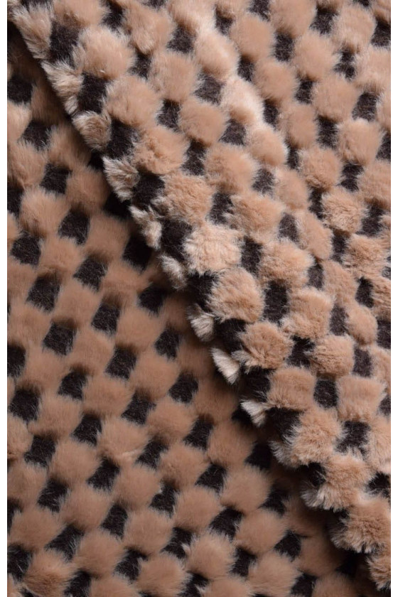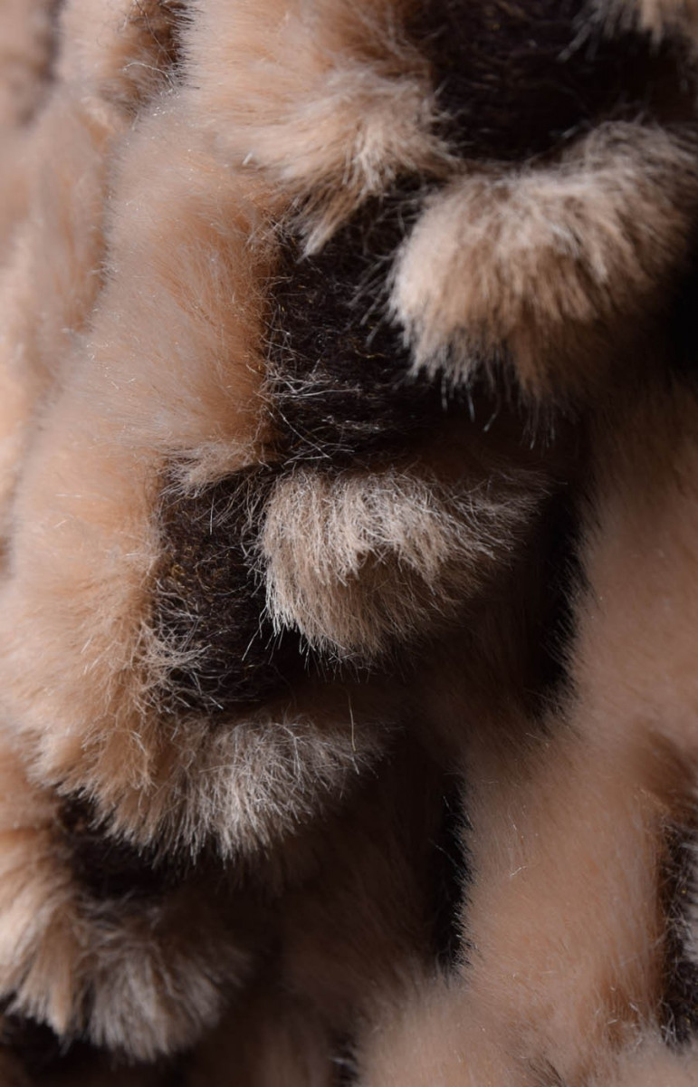 Épaisse fourrure écologique beige-marron pour manteaux ou vestes. Les cheveux mesurent environ 0,5 cm de long.