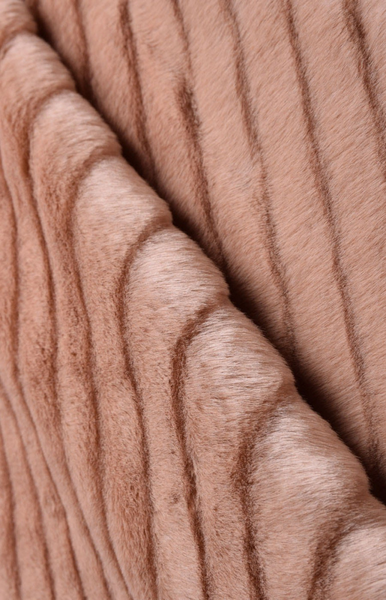 De la fausse fourrure épaisse rose poudré pour des manteaux ou des vestes, des étoles élégantes ou des passementeries de vêtements d’extérieur. Les cheveux mesurent environ 1 cm de long. Les rayures mesurent environ 2 cm de large.